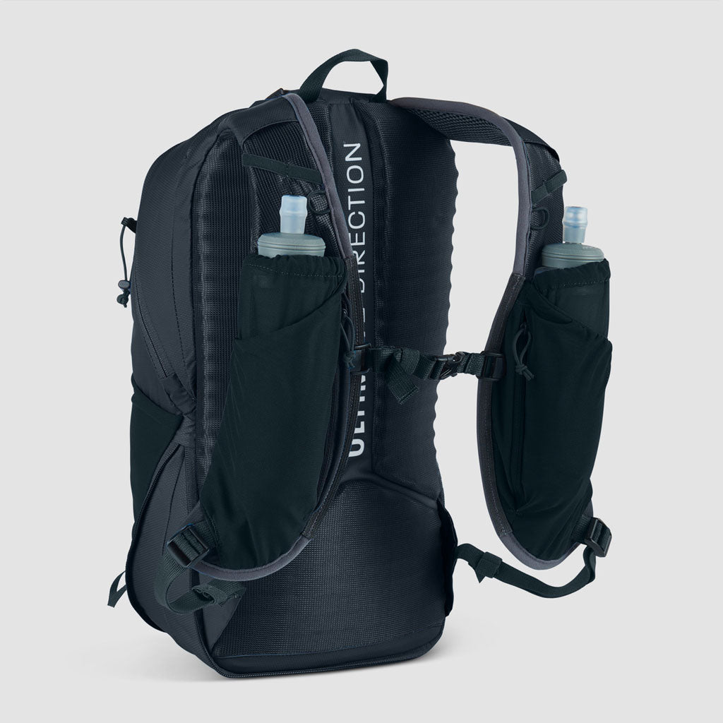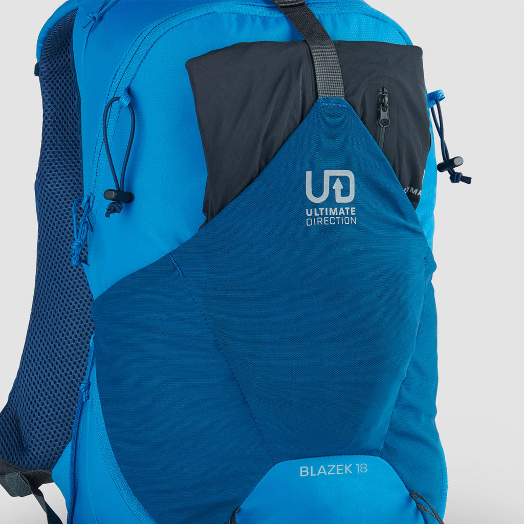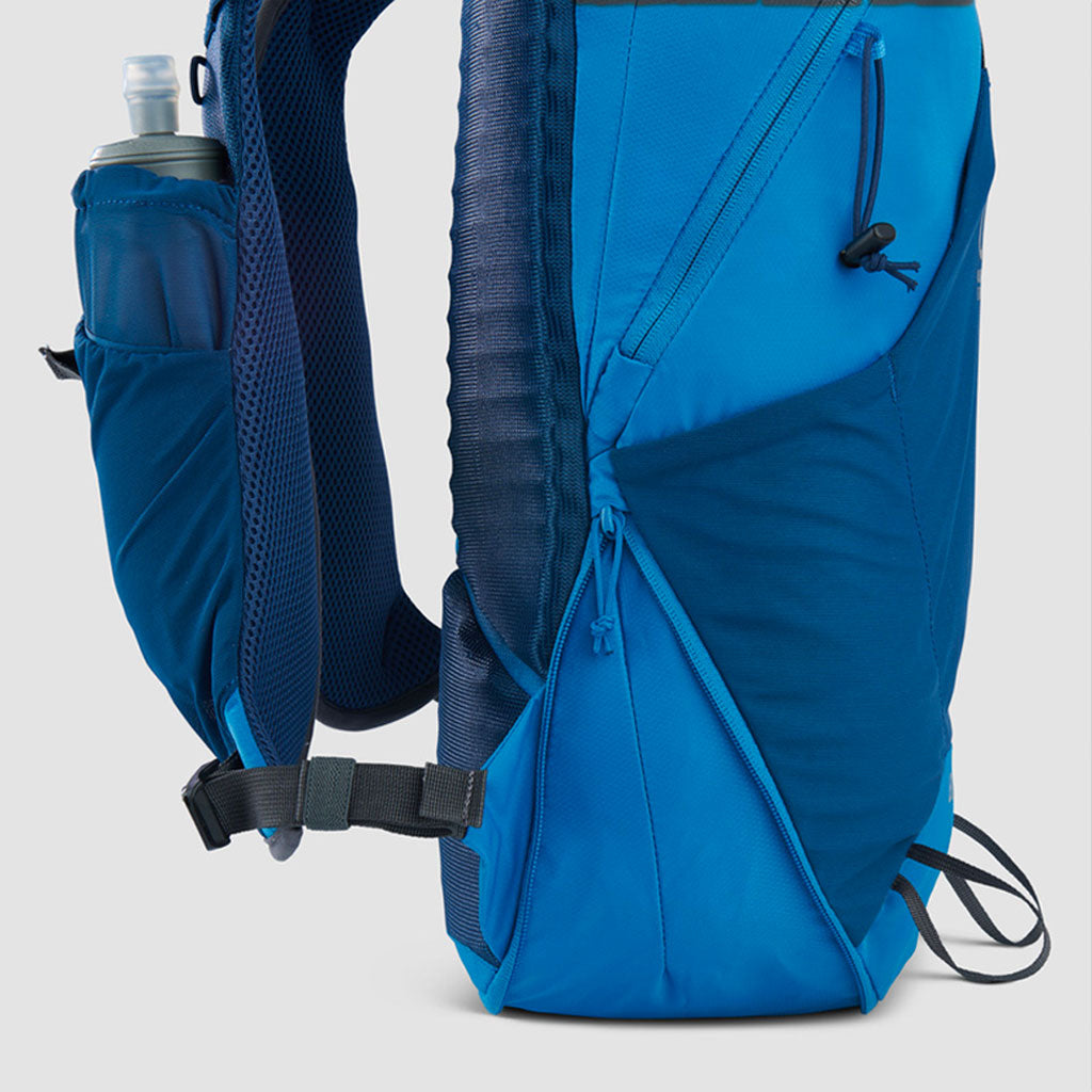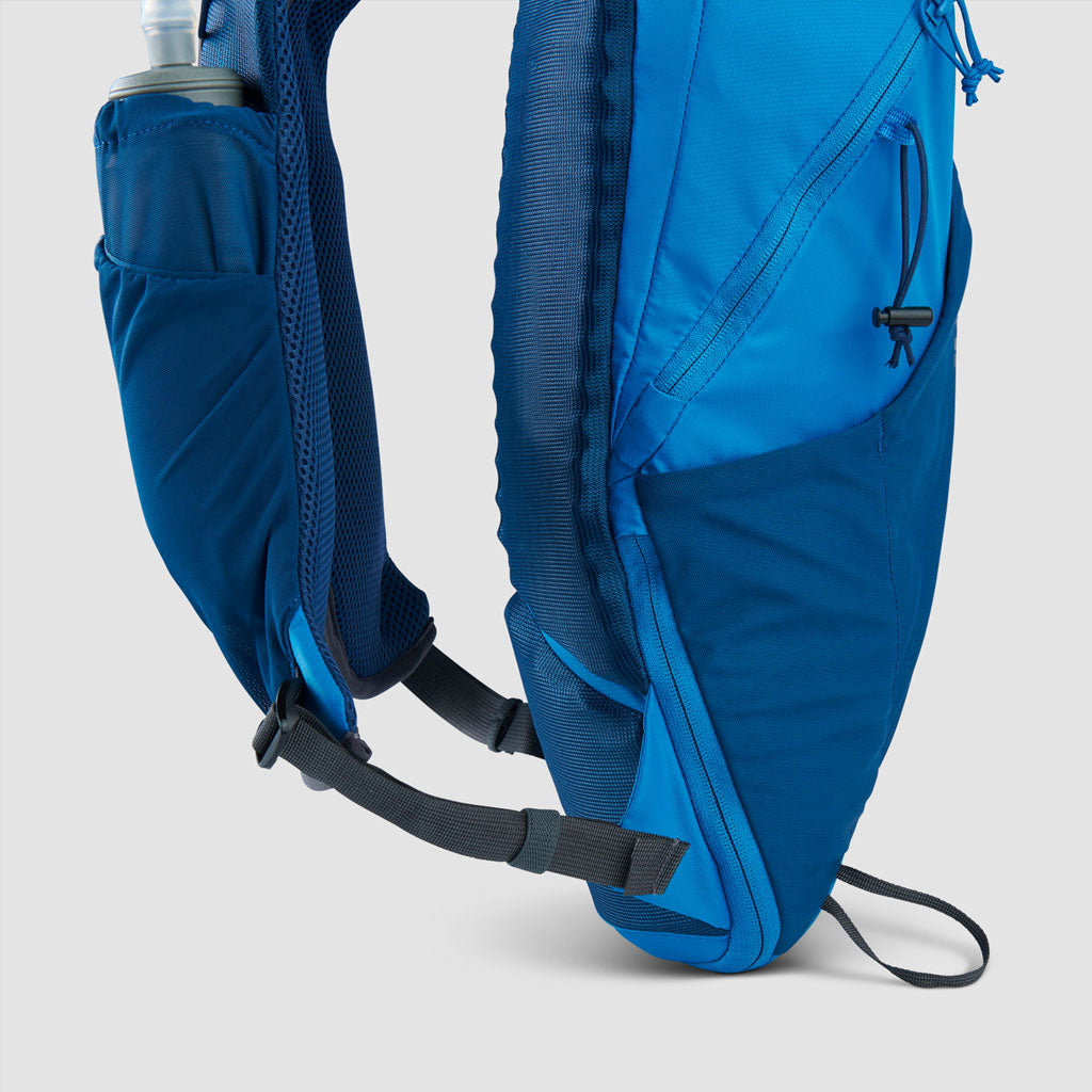 - Vest inspired pack straps with three layer chest pocketry to hold trail essentials such as water, phone, sunglasses or keys
