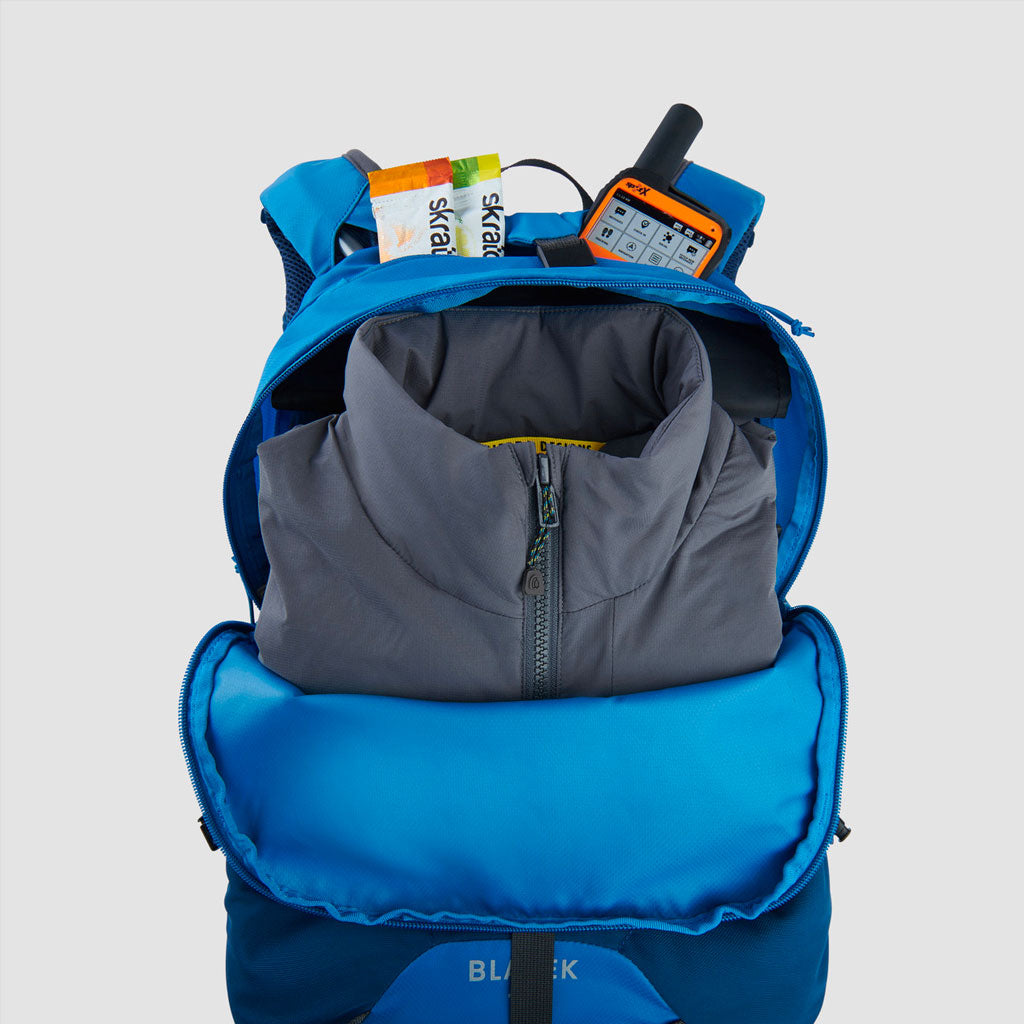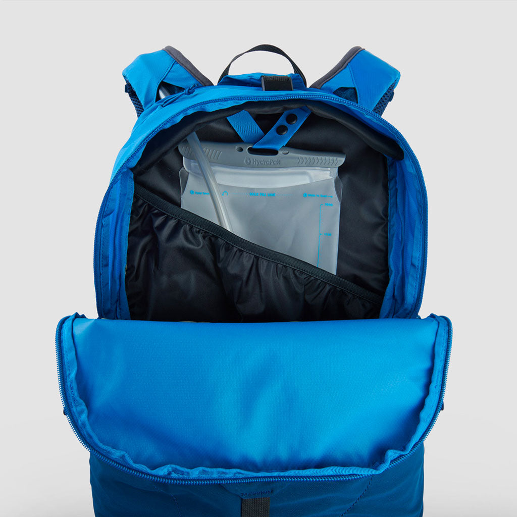 The Blazek 18 is a lightweight daypack that keeps your load stable and your back supported on day hikes or casual adventures. A simple, but effective bottom zipper adjusts the pack volume for when you don't need all 18 litres, shrinking down to 14 litres while holding the bulk of your gear higher up on your back and reducing pack sloshing. Front and back storage, including a compartment for a 2L bladder, plus compression cords help distribute gear evenly for a pack that feels like an extension of your body.