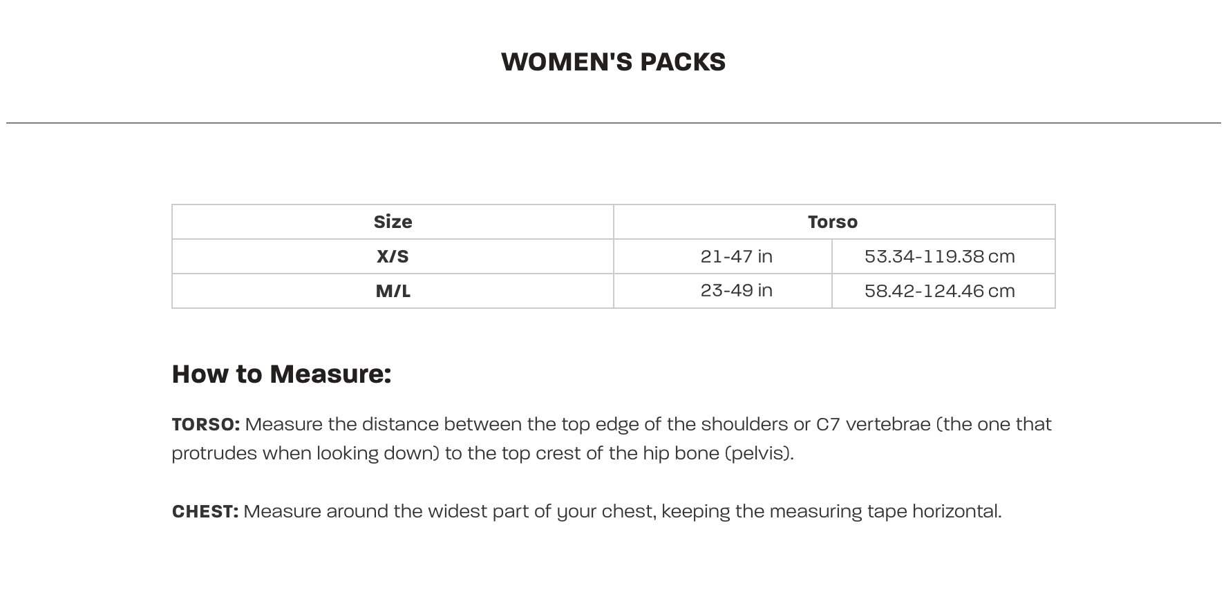 - Torso Size (M/L): 23-49" / 60-125 cm