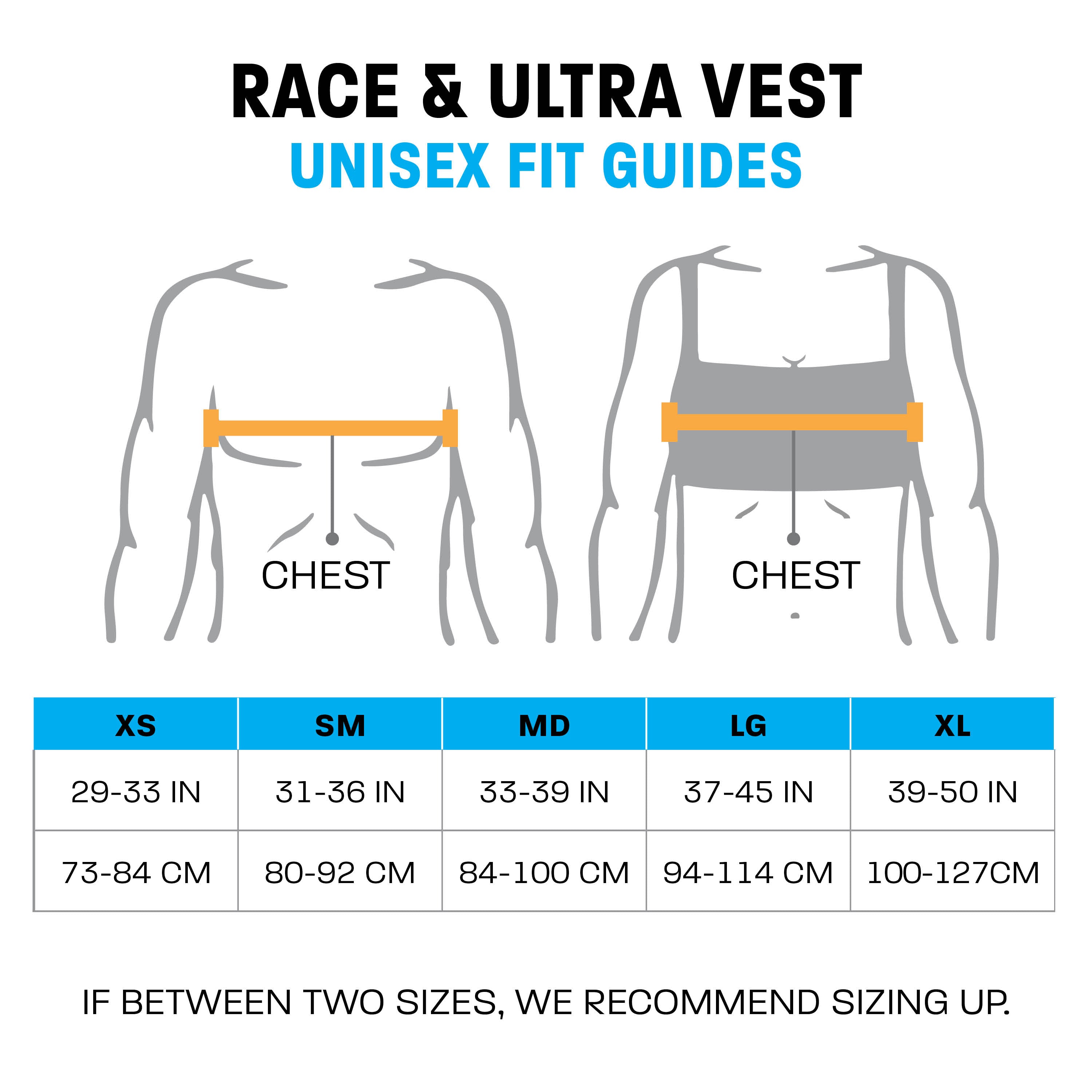 Optimised for setting PRs at your fastest pace yet. Featherlight yet feature rich, the Race Vesta uses the latest in fully customisable vest-fit technology with the ultra-durable Comfort Cinch™ 3.0 and protective mesh panels that prevent chafing over many miles. A narrower cut in the shoulder straps and back offers a more tailored fit for smaller frames than our vest version.