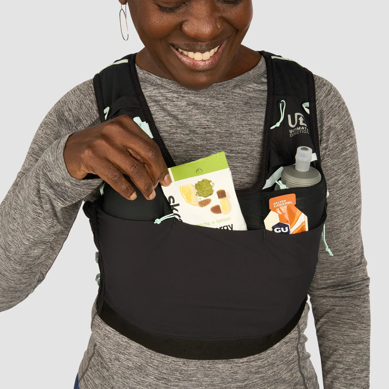 Long runs are a journey. Be prepared for whatever the adventure throws your way with the innovative Xodus Vesta. Designed for race-ready distances, ultimate comfort, and convenience in mind with uninterrupted front storage. With a 6L capacity, trekking pole stash straps and loads of pockets distributed between the front and back zones?including ample hydration storage options?ultra-breathable running vest will shuttle your day kit and trail necessities with on-the-go ease. Extra stretchy material, an elastic band across the lower ribs and a quick on/off zipper prioritise a close, contoured fit that reduces rubbing and bounce so you can comfortably log more miles, not gear adjustments, as the clock is ticking. A narrower cut in the shoulder straps and back offers a more tailored fit for smaller frames than our vest version.